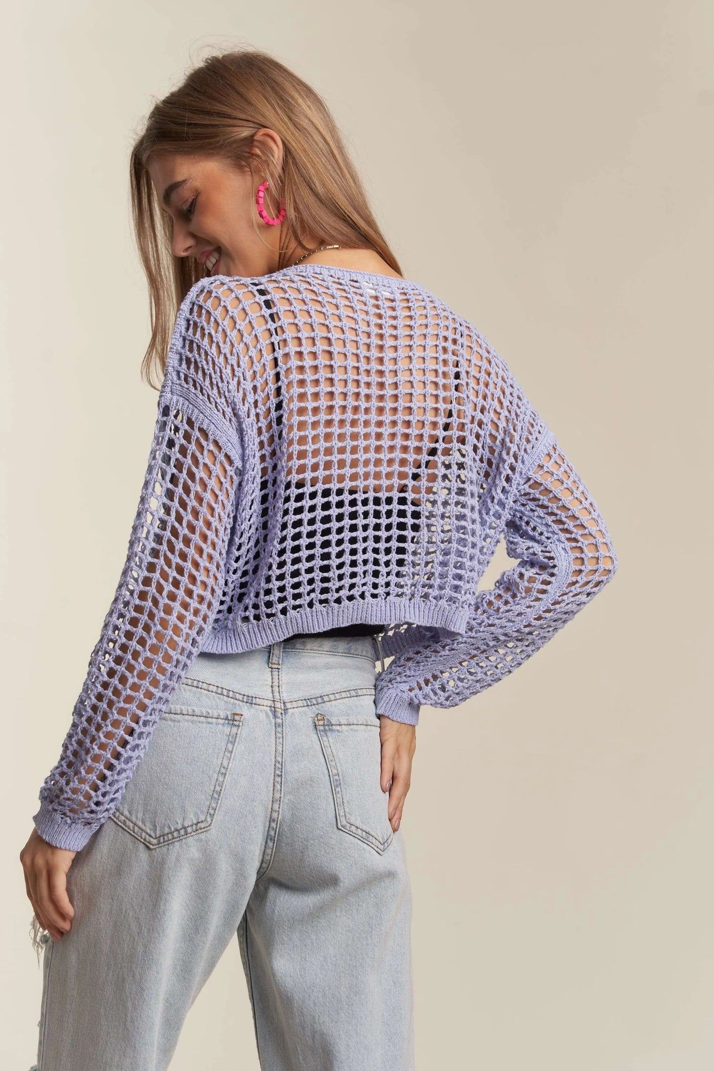 The Drop Shoulder Crochet Crop Top is a trendy and stylish piece for your wardrobe. Featuring a chic crochet design, this crop top adds a boho touch to your outfit. The drop shoulder style gives it a relaxed and laid-back vibe. Perfect for pairing with high-waisted jeans or skirts for a fashionable look. A must-have for those looking to add a touch of texture and flair to their outfit.