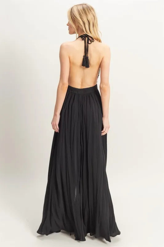 HYFVE Halter Neck Fitted Waist Flowy Maxi Dress