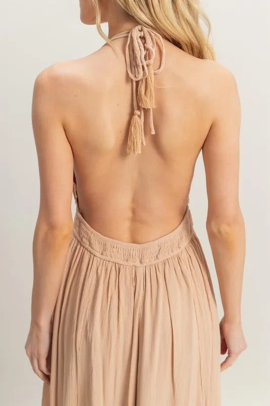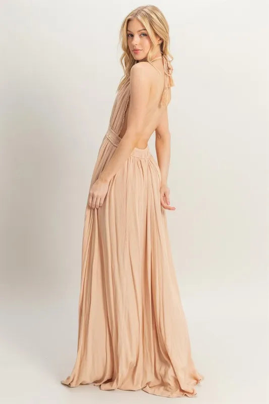 HYFVE Halter Neck Fitted Waist Flowy Maxi Dress
